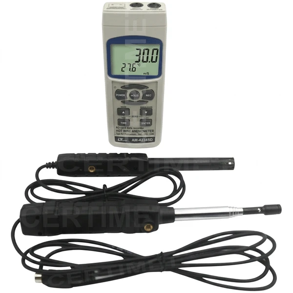 >Medición de velocidad del aire con sensor de hilo caliente de alta precisión.