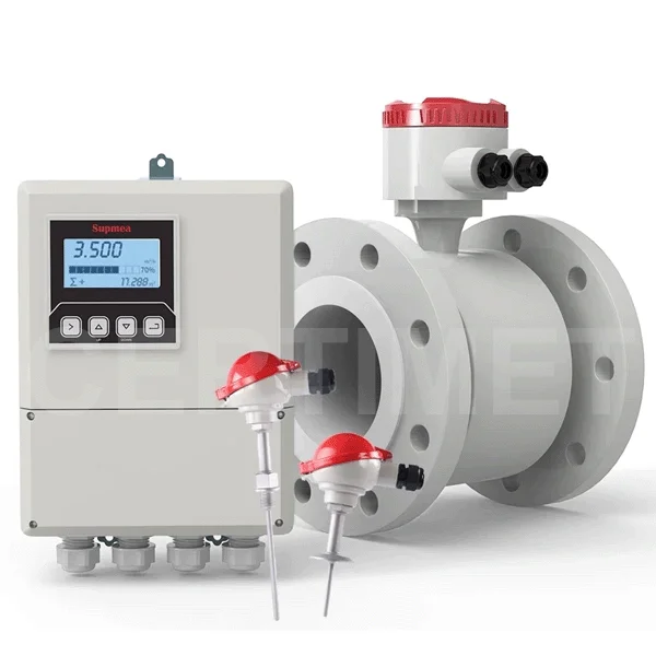 >Tecnología de medición electromagnética de flujo combinada con sensores de temperatura.
